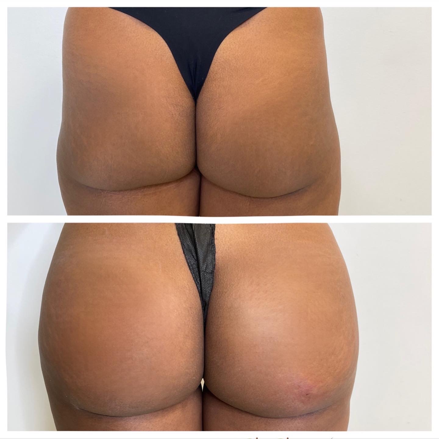 This is a minimally invasive procedure where multiple small injections are placed in the buttocks area, or hips, to add volume and definition, as well as smooth imperfections such as dimples while improving overall shape of the butt and/or hip dips. In addition to the results, volume is continually amplified over time as the injections proliferate collagen growth and build up over time.